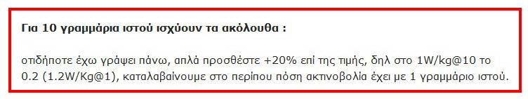 Εδώ ουσιαστικά ο συγγραφέας του άρθρου μας λέει πως να κάνουμε την αναγωγή απο τα 10gr ιστού στο 1gr ιστού για να μπορέσουμε να συγκρίνουμε τον πίνακα που μας είχε παραθέσει παραπάνω. Μας λέει λοιπόν να προσθέσουμε 20% στις τιμές κ.λ.π. Το 20% το χρησιμοποιεί δηλαδή σαν συντελεστή μετατροπής. Αν δεν είναι εντελώς αυθαίρετο, αφου δεν εξηγεί που και πως βγαίνει αυτό το 20% τουλάχιστον είναι ΛΑΘΟΣ και αυτό αποδεικνύεται σε πάρα πολλές περιπτώσεις στο επόμενο site που μας έδωσε, που έχει τα SARs όλων των συσκευών...