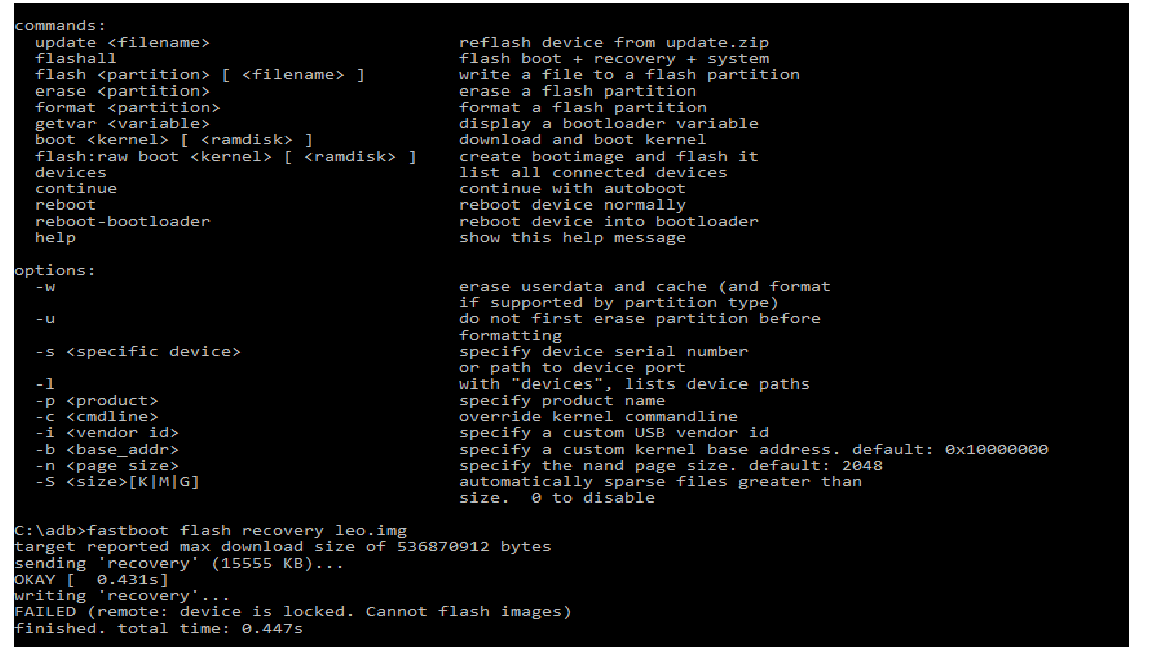 - Πληκτρολογούμε fastboot flash recovery twrp_recovery_leo.img
