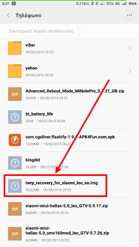 Μετά το σετάρισμα λοιπόν, και αφού ξεκινήσει κανονικά η Miui την ξανασυνδέουμε την συσκευή στον υπολογιστή με το καλώδιο USB. Όταν ο υπολογιστής την δει, κάντε copy μέσα στη συσκευή ΧΥΜΑ (όχι σε φακέλους) τα αρχεία Flashify, το αρχείο της custom recovery TWRP και την τελευταία ελληνική rom (χωρίς καμμία μετονομασία σε update κ.λ.π. Απλά με το όνομα που έχει) που έχετε ήδη απο προηγουμένως κατεβάσει στον υπολογιστή σας...