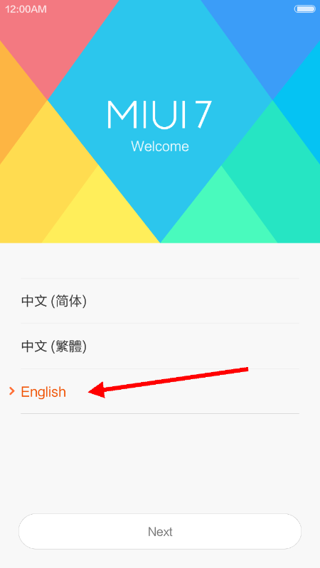 Τώρα η συσκευή θα κάνει μόνη της επανεκκίνηση (μπορείτε να την βγάλετε από το καλώδιο, καθώς κάνει την επανεκκίνηση...) και θα ξεκινήσει στην αγγλοκινέζικη Miui V7... Όταν τελειώσει την επανεκκίνηση, θα πρέπει να σετάρετε τη Miui, για να ξεκινήσετε... Εγώ σε αυτό το στάδιο προσπερνάω όπως-όπως όλες τις οθόνες του wizard, όπως φαίνεται από κάτω...