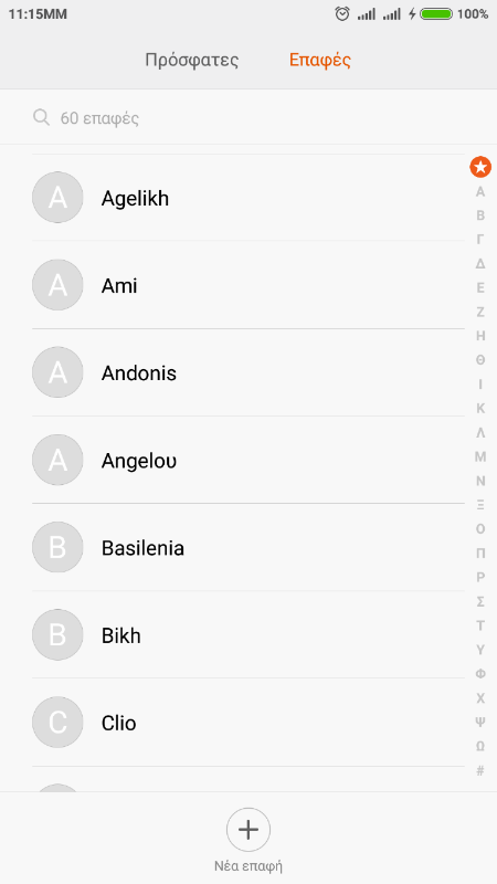 Οσο για τις επαφες , δεν με καει το +30 . Στο screenshot που ανεβασα φαινεται πως οι επαφες μου ειναι αγγλικα , αλλα στην δεξια μερια εχει μονο ελληνικους χαρακτηρες για να πηδαω κατευθειαν επανω στο αρχικο γραμμα . Βεβαια ουτε αυτο μου ειναι προβλημα , απλα πριν δουλευε